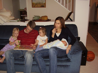 Quiet time to relax and read with family (and pose for a picture in between). Note: Brett pointed out that his book looked harder than the kids' books...Brett, look at you all grown up and reading big kids books!
